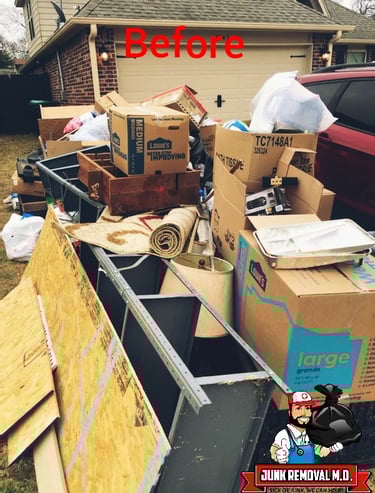 At Junk Removal M.D., we provide a fully insured, eco-friendly junk removal service to NE Oklahoma, ensuring safe and efficient handling of your unwanted items for both residential and commercial customers. We recycle, reuse, and donate as much as possible while safely and properly disposing of the excess.